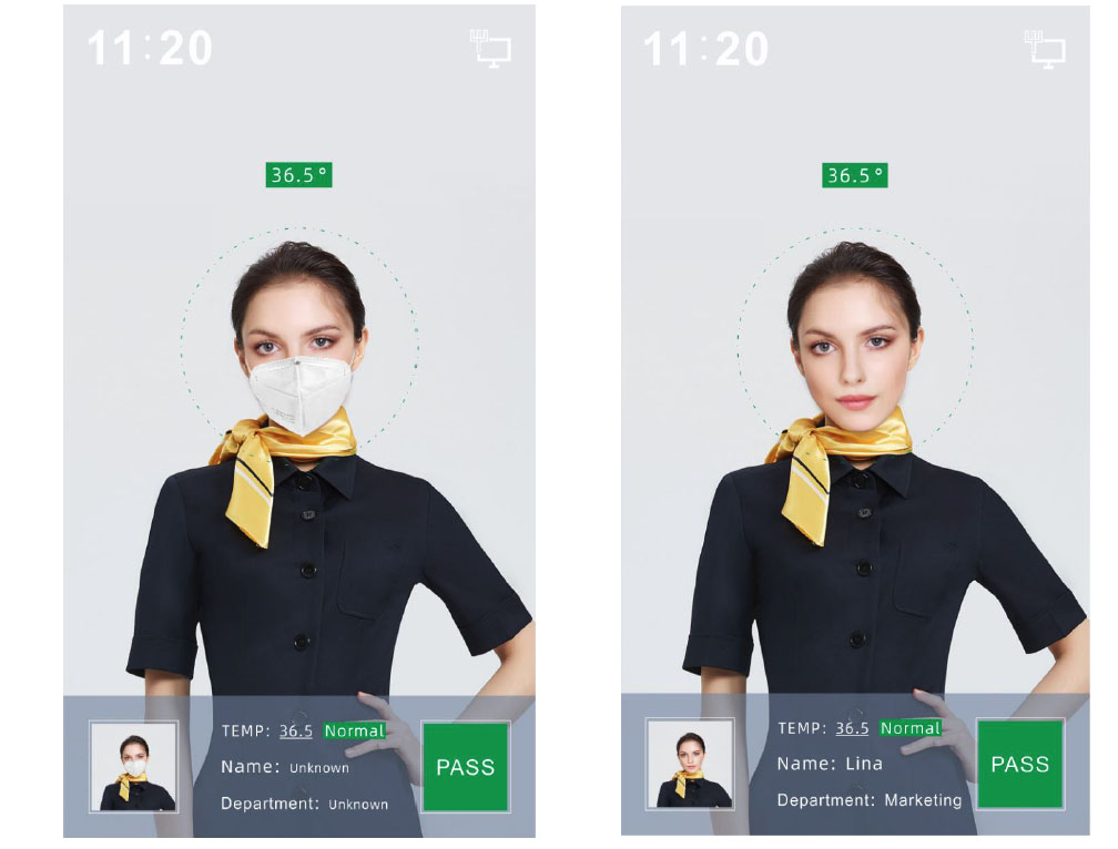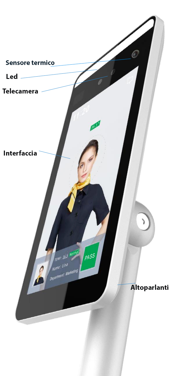 La temperatura del corpo umano viene rilevata durante il riconoscimento facciale per eventuali stati febbrili.